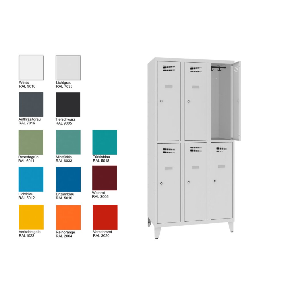 6 Fächer, 400 mm Abteilbreite, freie Farbwahl