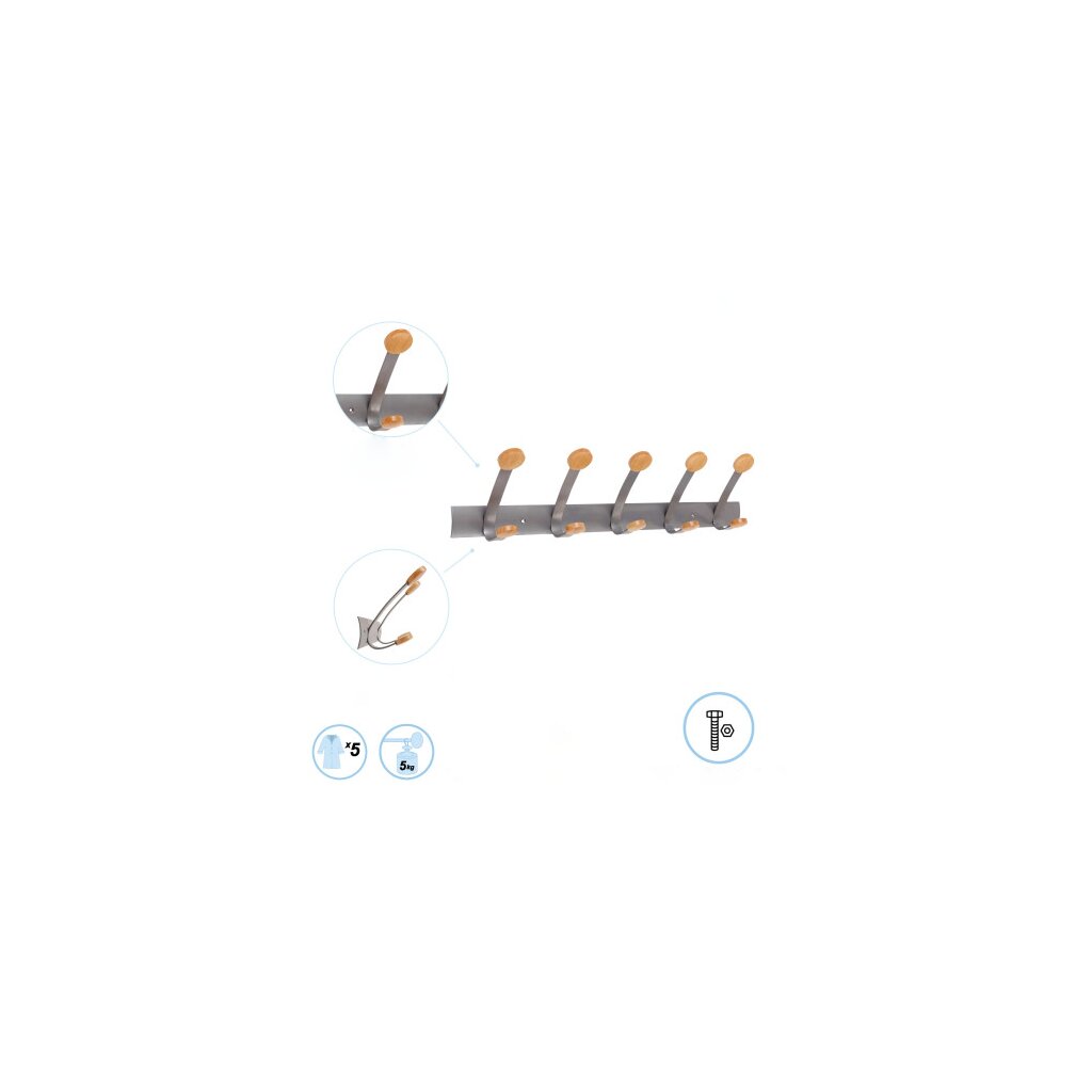 5 doppelt abgerundete Holzshaken für perfekten Halt und Respekt vor der Kleidung